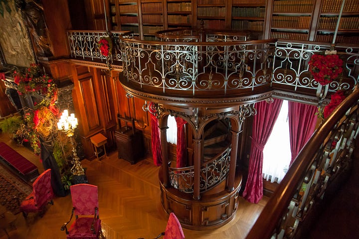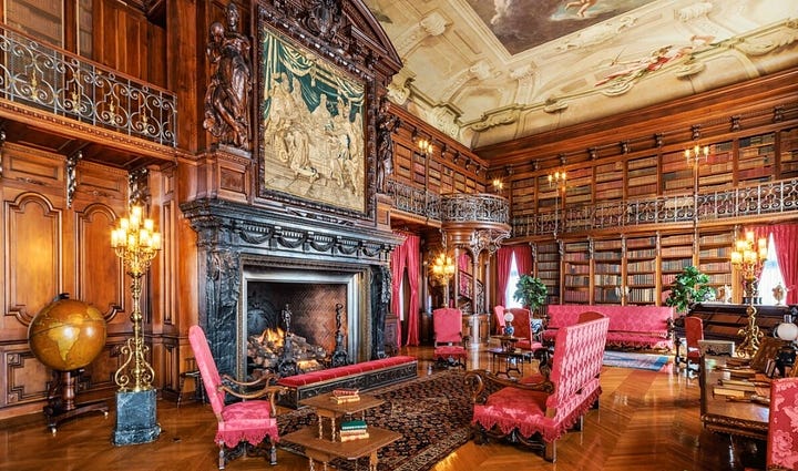 Completed in 1895, the estate contained 250 rooms, including a two-story library housing over 10,000 volumes, music rooms for recitals, guest suites for extended visits, and a banquet hall designed for formal gatherings.